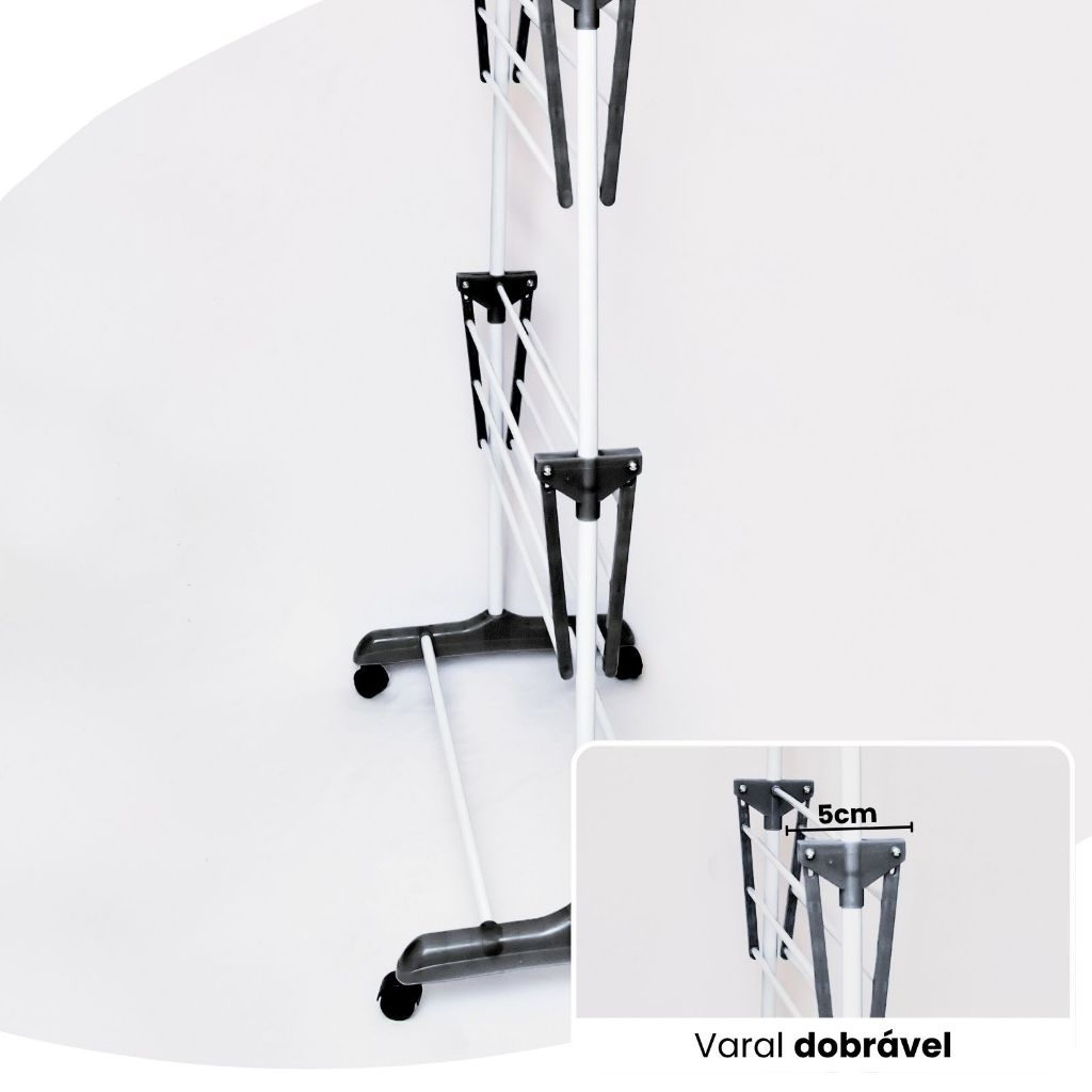 - Design Compacto: Ideal para áreas pequenas, maximiza o espaço e permite que as roupas sequem de maneira eficiente.