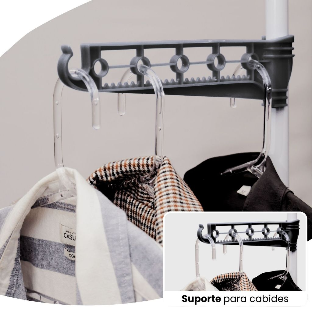 - Suporte para Cabides: Facilita a secagem de roupas de tecido leve.